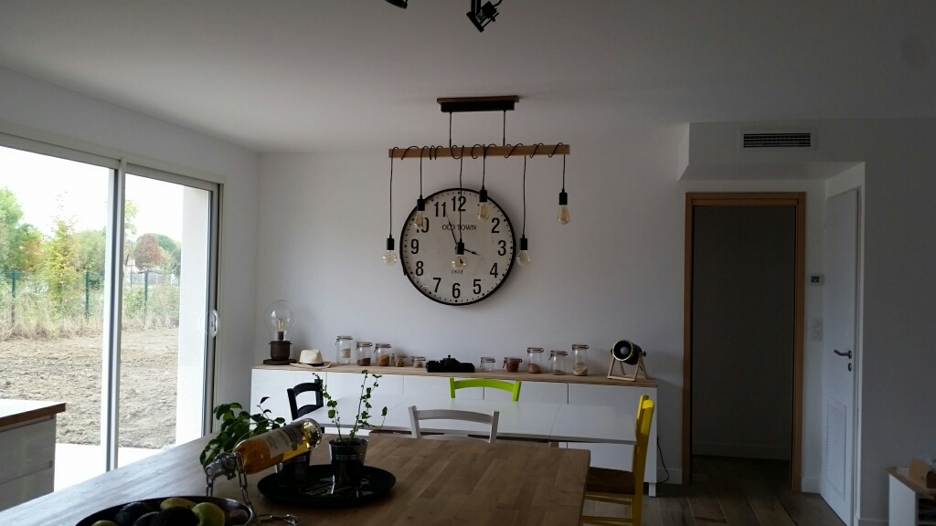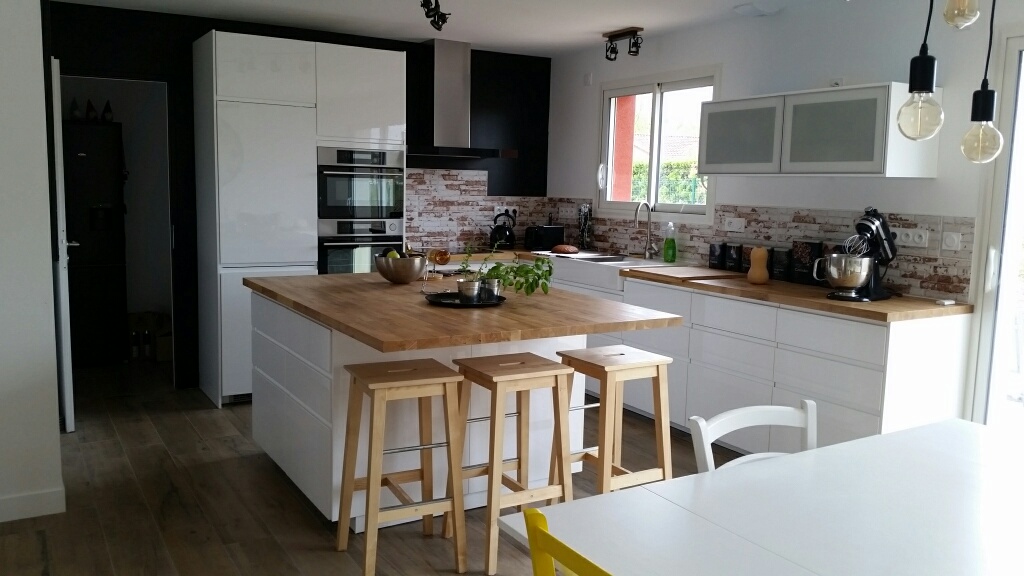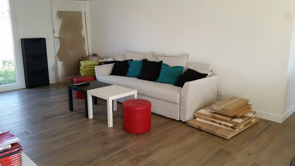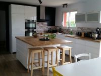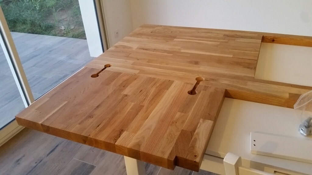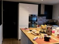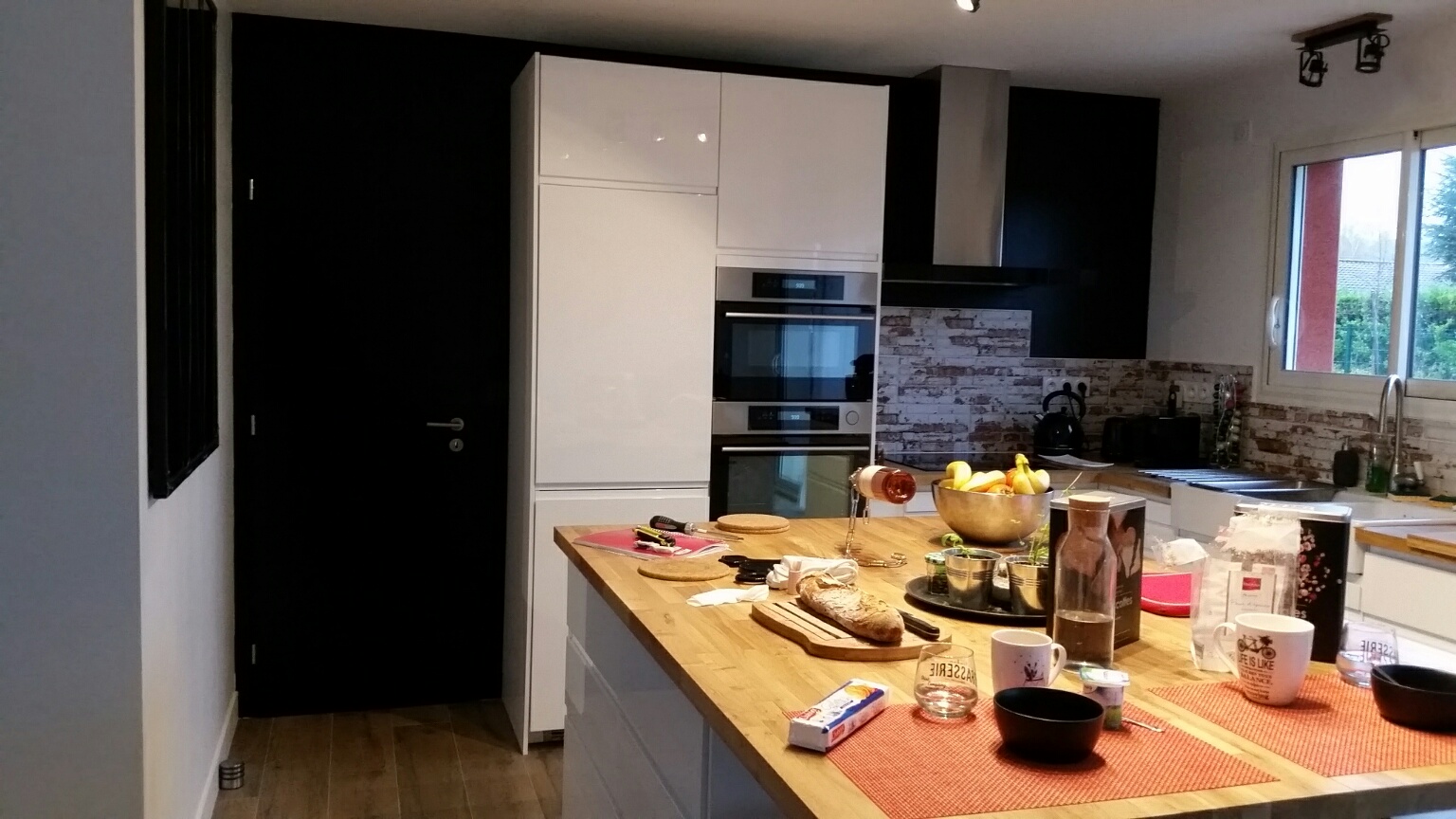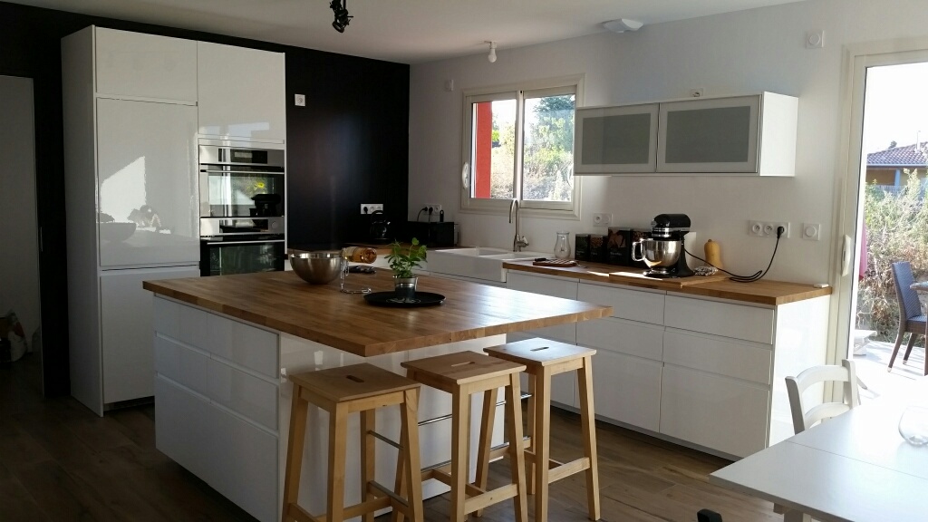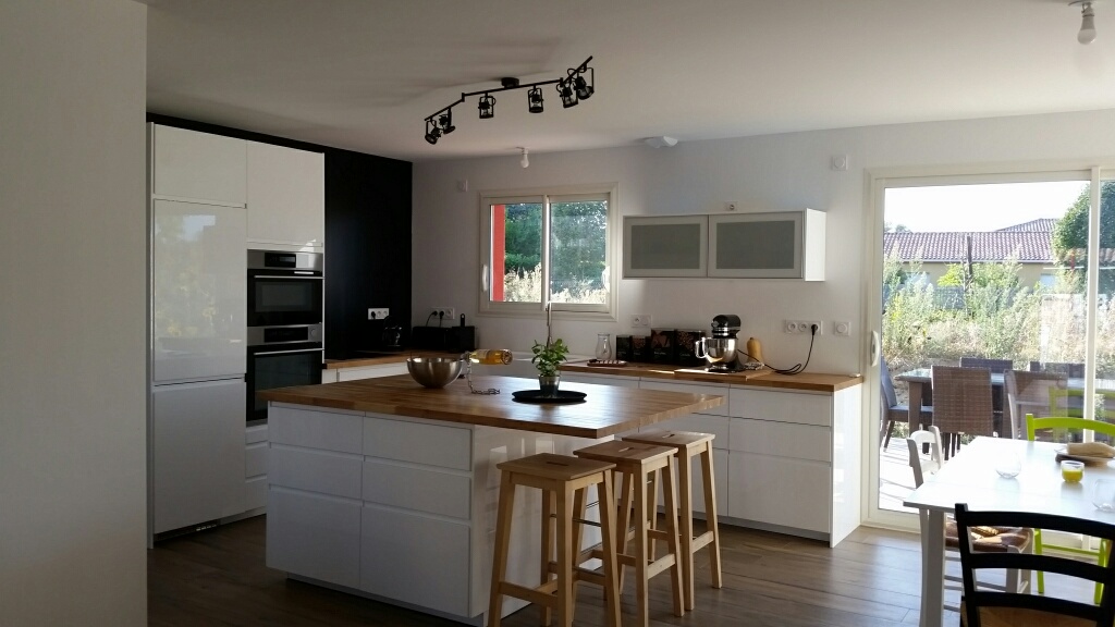 Ca y est, nous habitons officiellement dans notre maison! Nous avons rendu hier soir les clés de notre appartement (état des lieux prévu en août, car absence de la propriétaire). Le parquet des deux autres chambres a également été réalisé (un grand merci à mon frérot!!!!). Nous avons également avancé le montage des caissons de l’ilot central.