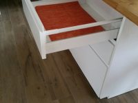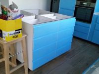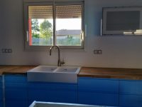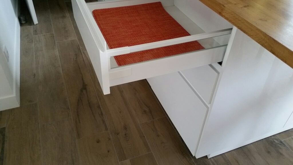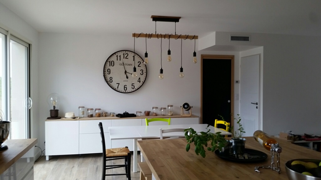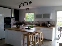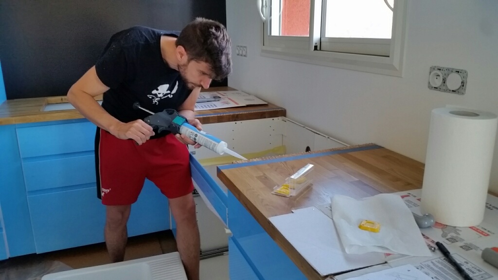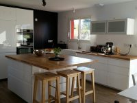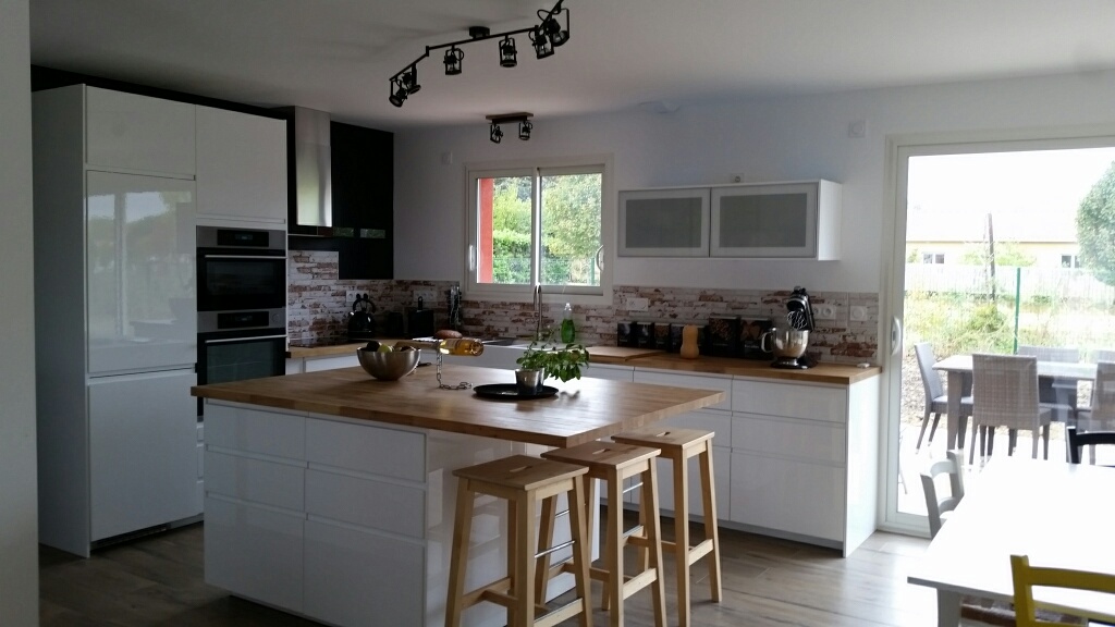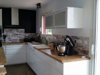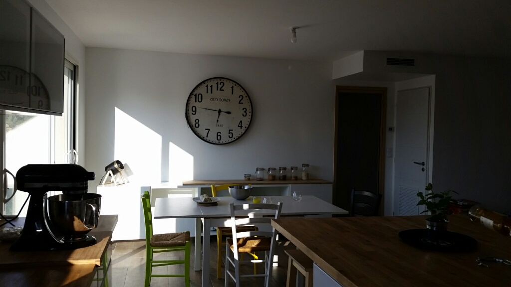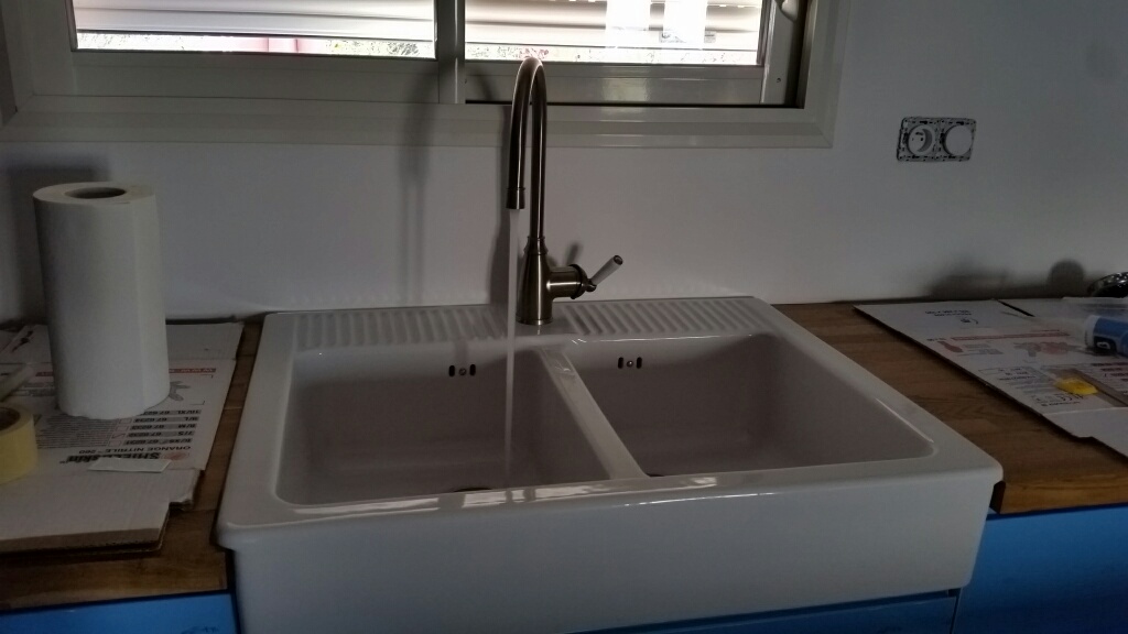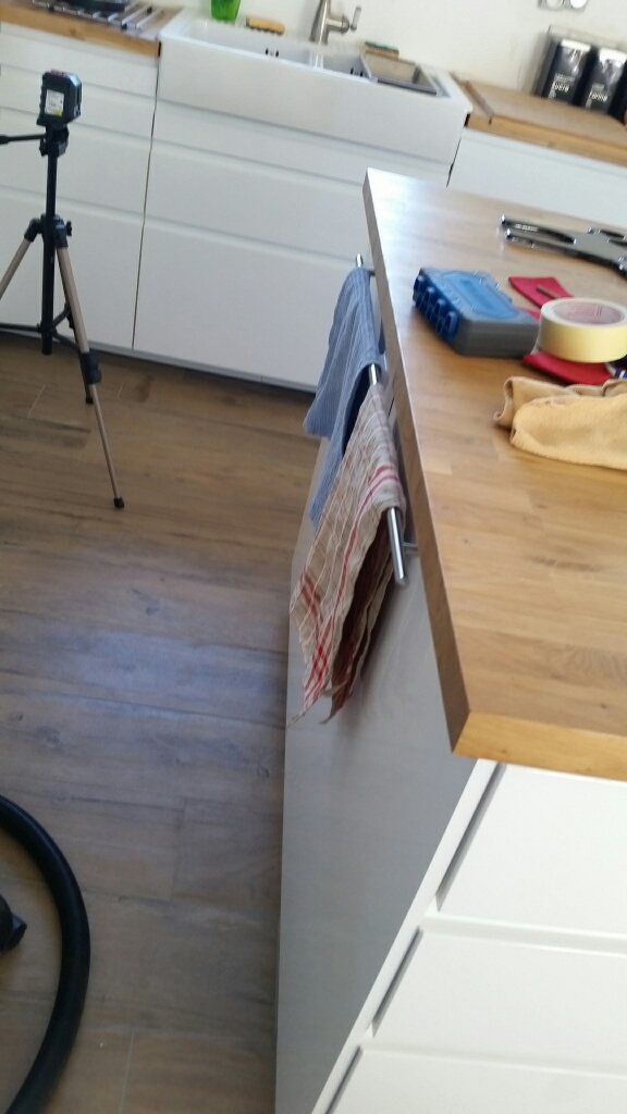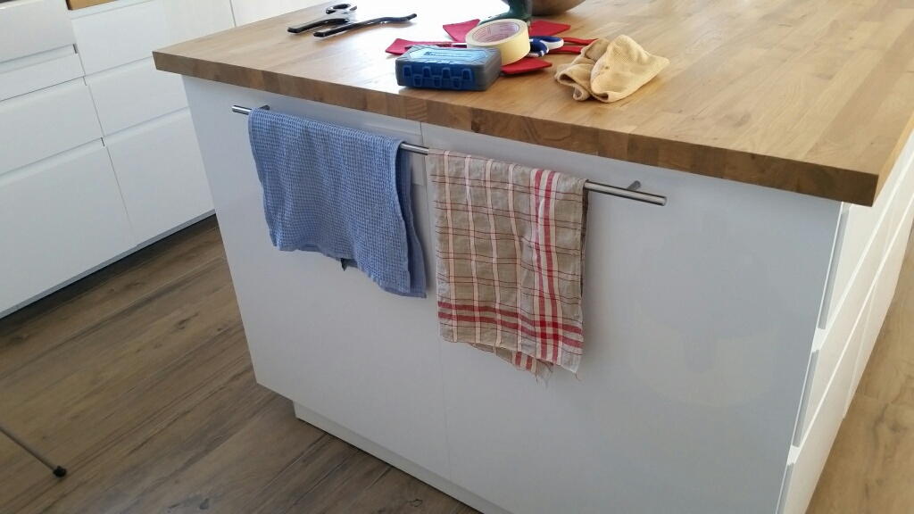 Ca y est, nous habitons officiellement dans notre maison! Nous avons rendu hier soir les clés de notre appartement (état des lieux prévu en août, car absence de la propriétaire). Le parquet des deux autres chambres a également été réalisé (un grand merci à mon frérot!!!!). Nous avons également avancé le montage des caissons de l’ilot central.