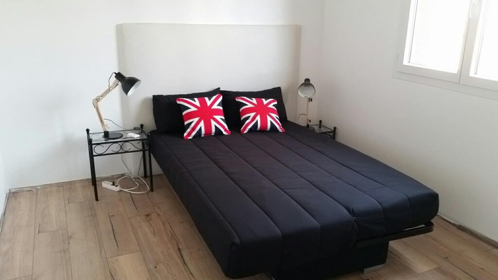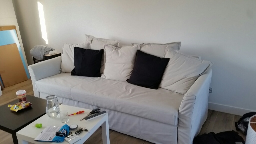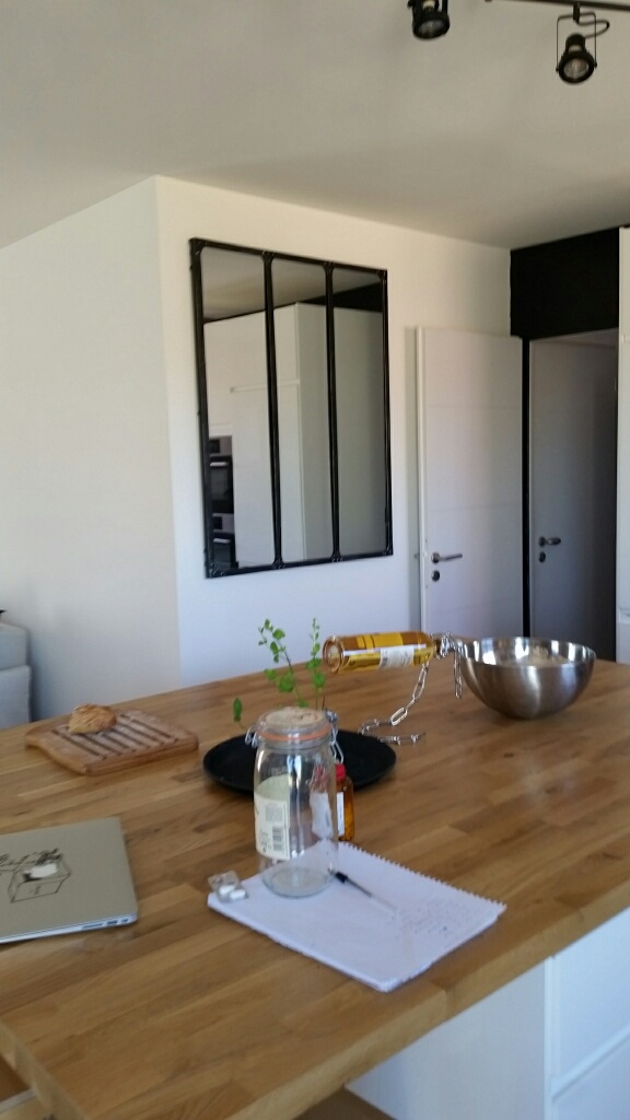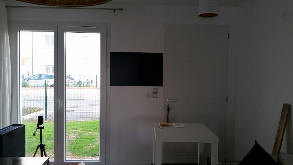 - installé une tringle à rideau au dessus de la baie vitrée (pour nous cacher un peu du vis à vis)