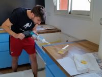- peint le cellier et le salon en satin blanc (peinture lessivable contrairement à auparavant)