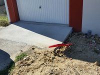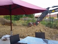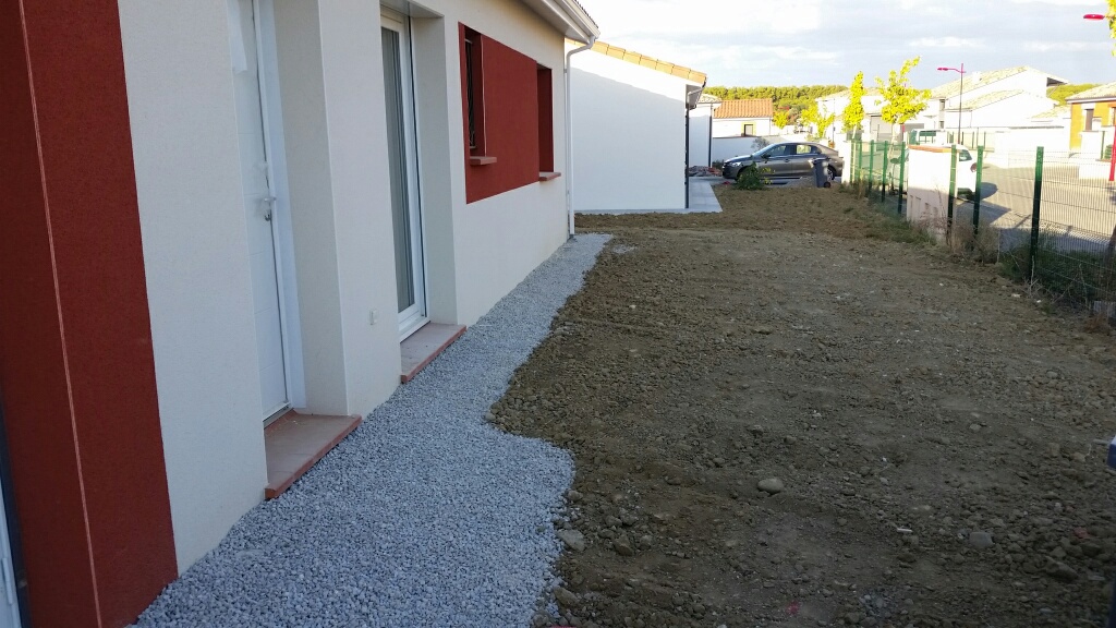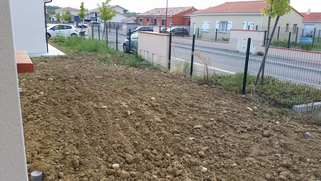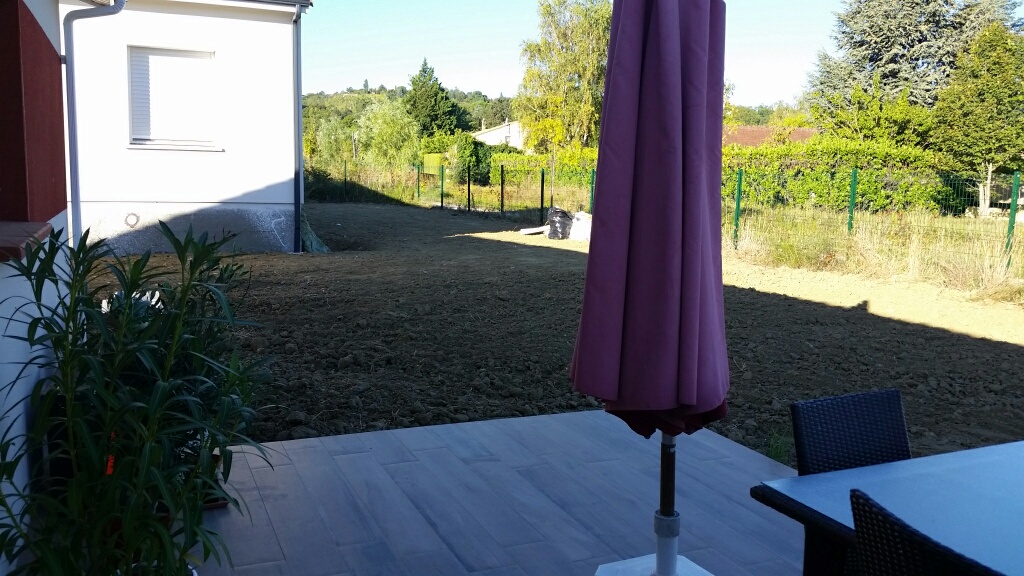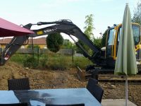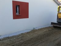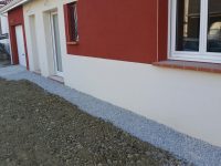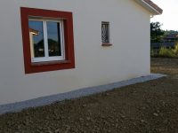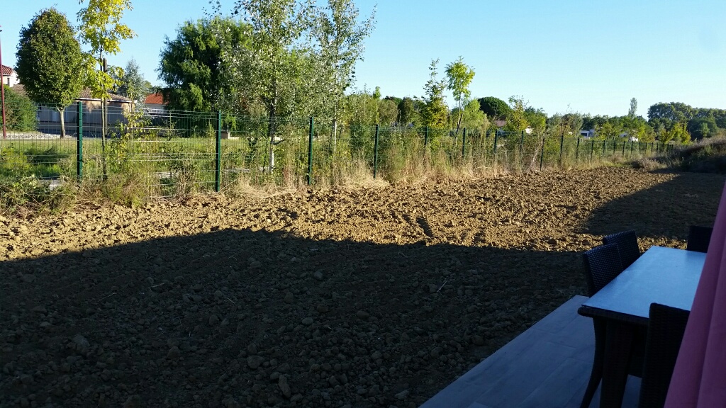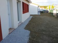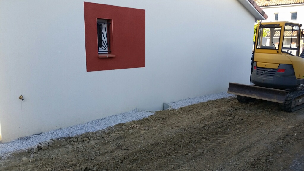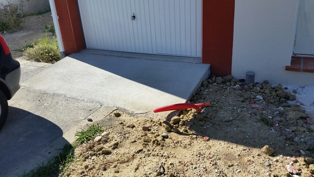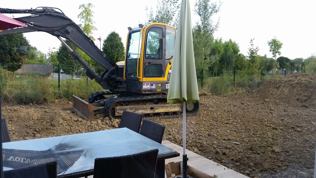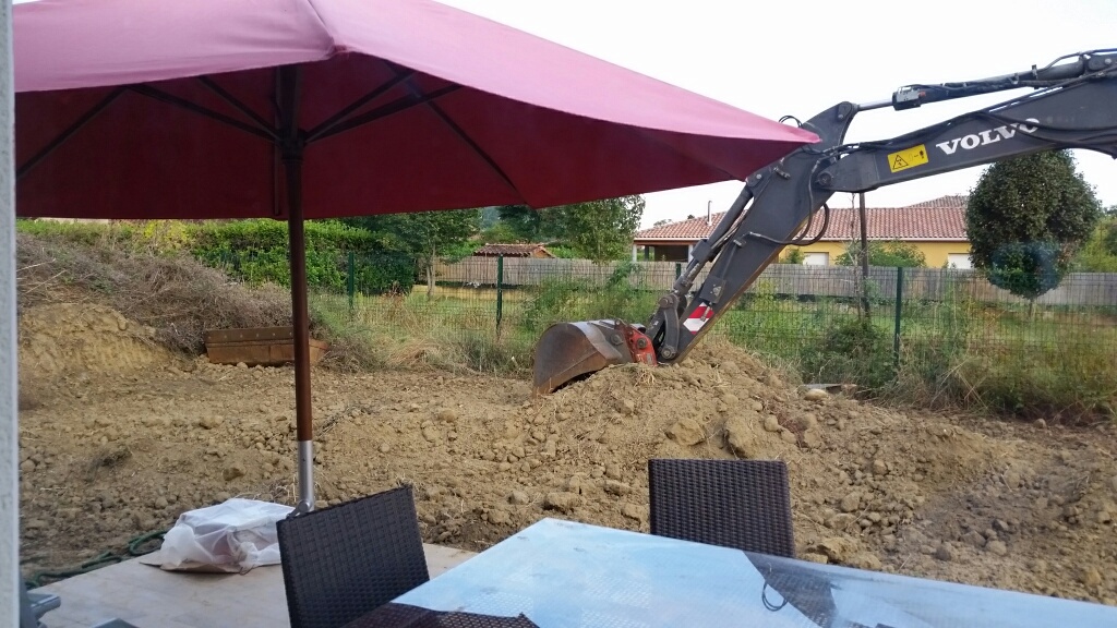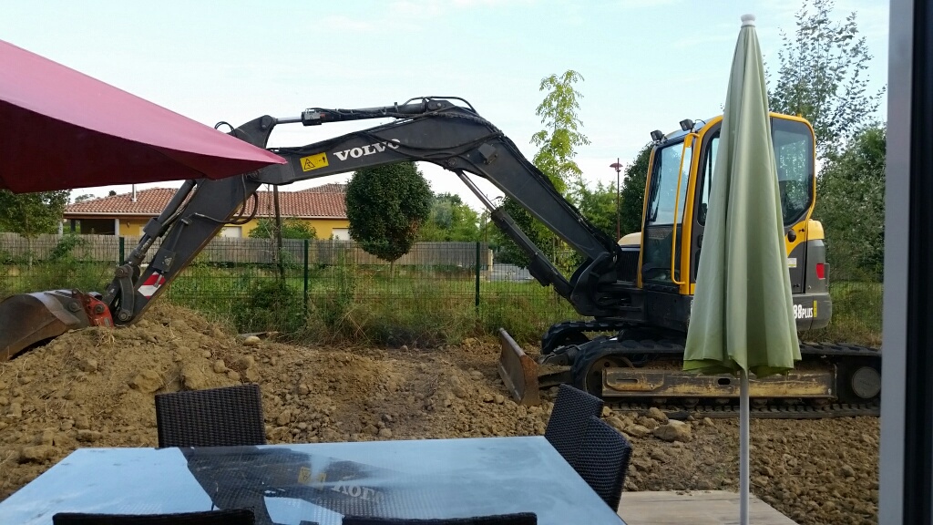 Un an déjà!!! Pour fêter ça, les travaux de terrassement sont finis. On a enfin pu enlever la protection de la porte d’entrée.