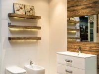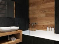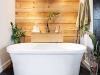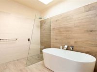 Nous avons également choisi de mettre ce carrelage imitation parquet au dessus de la baignoire, pour donner quelque chose qui ressemble à ci-dessous: