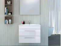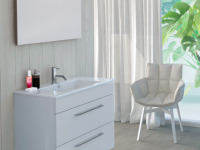 Nous avons choisi le meuble SMART de chez Adattocasa en blanc laqué 100cm, avec le miroir assorti. Il a un siphon déporté afin de ne pas avoir de « trou » dans le premier tiroir. Le même meuble en 55 sera disposé dans la salle d’eau.