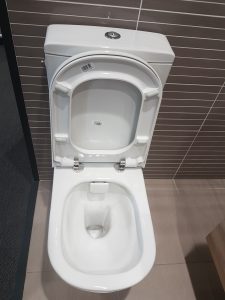 La particularité c’est qu’il n’y a plus de « fente » tout autour de la cuvette, où l’eau habituellement sort. C’est plus facile de nettoyage selon le vendeur.