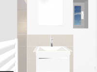 Concernant la salle d’eau parentale, nous avons choisi de la faïence Tau canaletto 30×90. Nous aurons deux types de carreaux. Le fond de la douche sera carrelé en version rayée horizontalement, le reste sera en version plus unie, ressemblant à de la pierre. Comme la salle d’eau est très étroite, nous avons décidé de carreler uniquement la douche et derrière le meuble vasque. Le reste sera peint en blanc, sauf le mur du fond, derrière les WC, qui sera peint dans une couleur assortie au carrelage (ventre de biche chez tollens).
