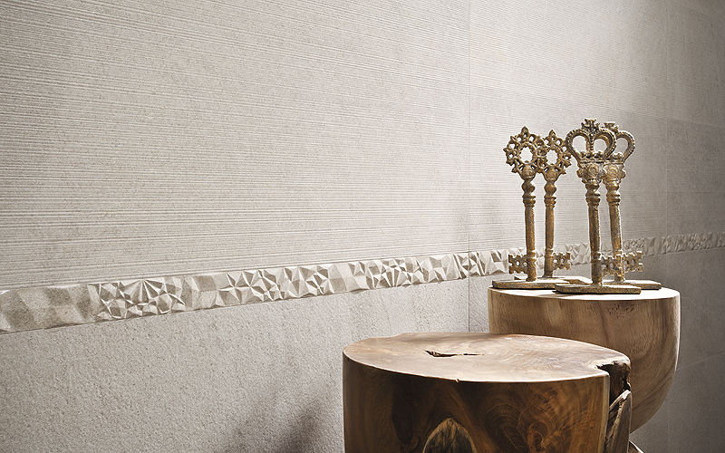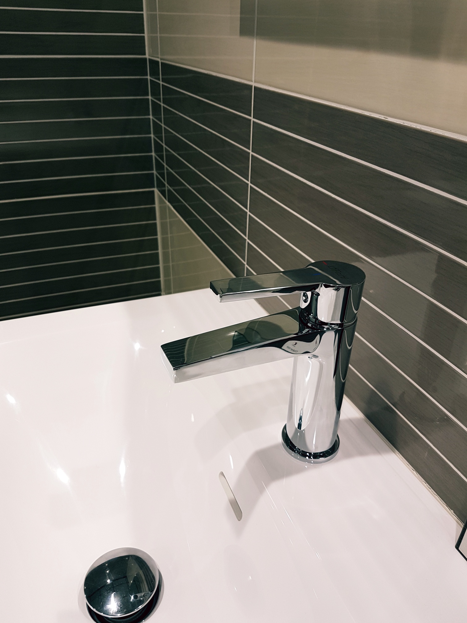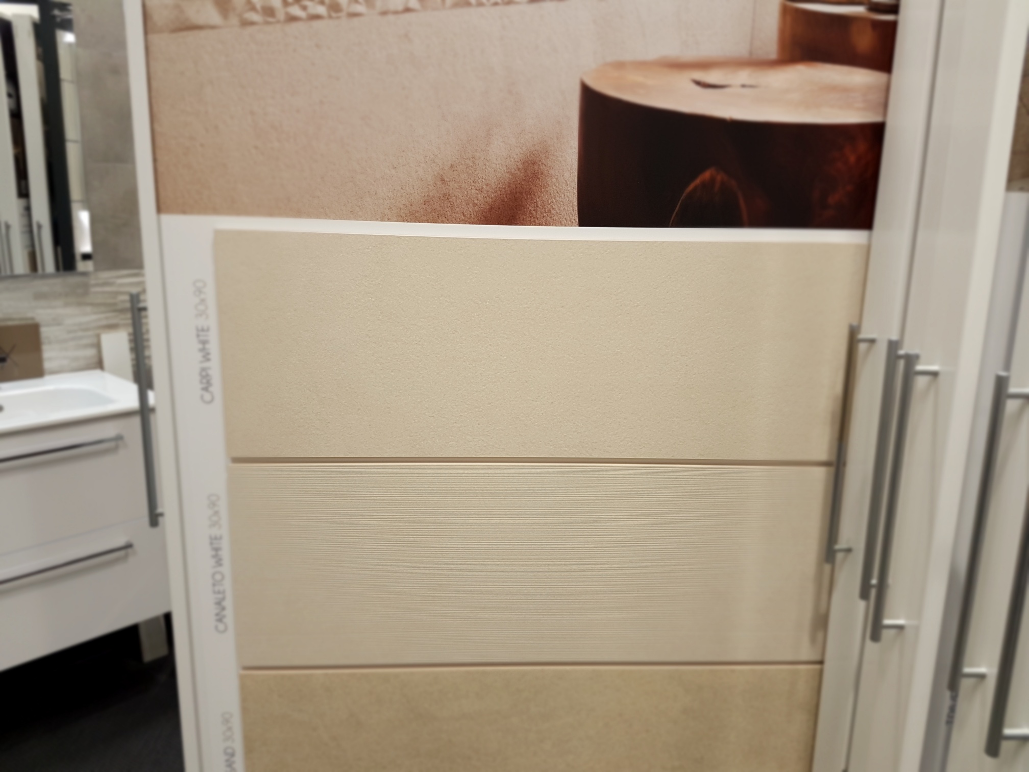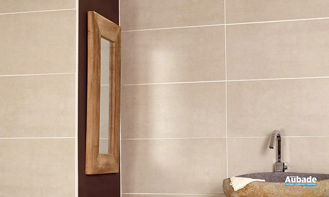 Le reste de la faïence de la salle de bain sera de la faïence Track de Metropol Ceramica, en beige et en 25×50.