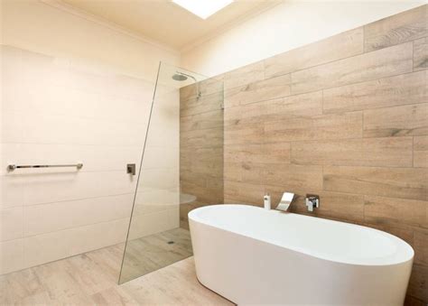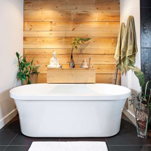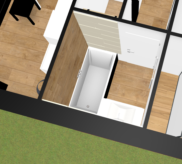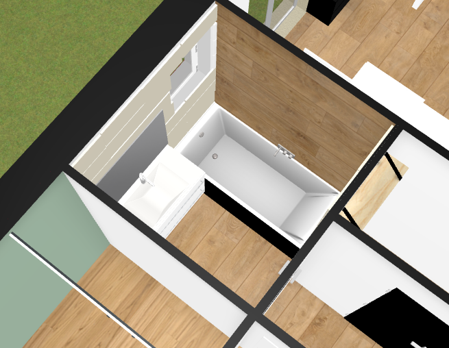 Nous avons également choisi de mettre ce carrelage imitation parquet au dessus de la baignoire, pour donner quelque chose qui ressemble à ci-dessous: