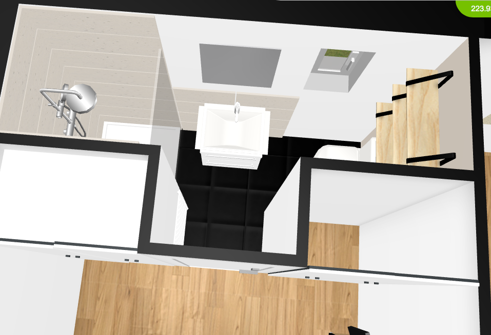 Nous avons choisi de carreler le tablier de la baignoire en noir. Pour cela nous avons choisi le carrelage Koshi de Imola en 45×45. Ce carrelage sera également utilisé pour le sol de notre salle d’eau parentale.