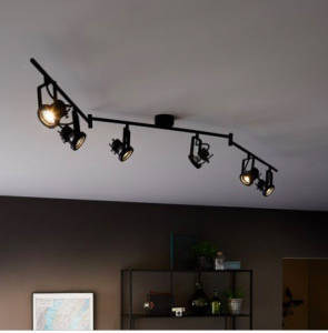 Il y aura probablement une luminaire composé de plusieurs spots comme ci-dessous au dessus de l’ilot central, et son équivalent sera situé au-dessus de la fenêtre afin d’éclairer correctement l’évier et l’angle.