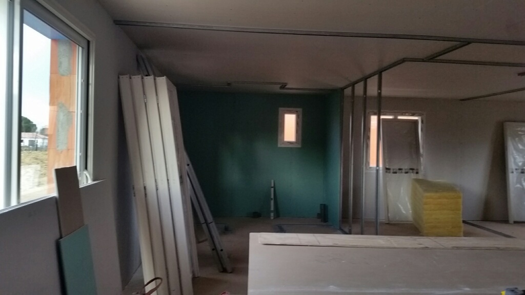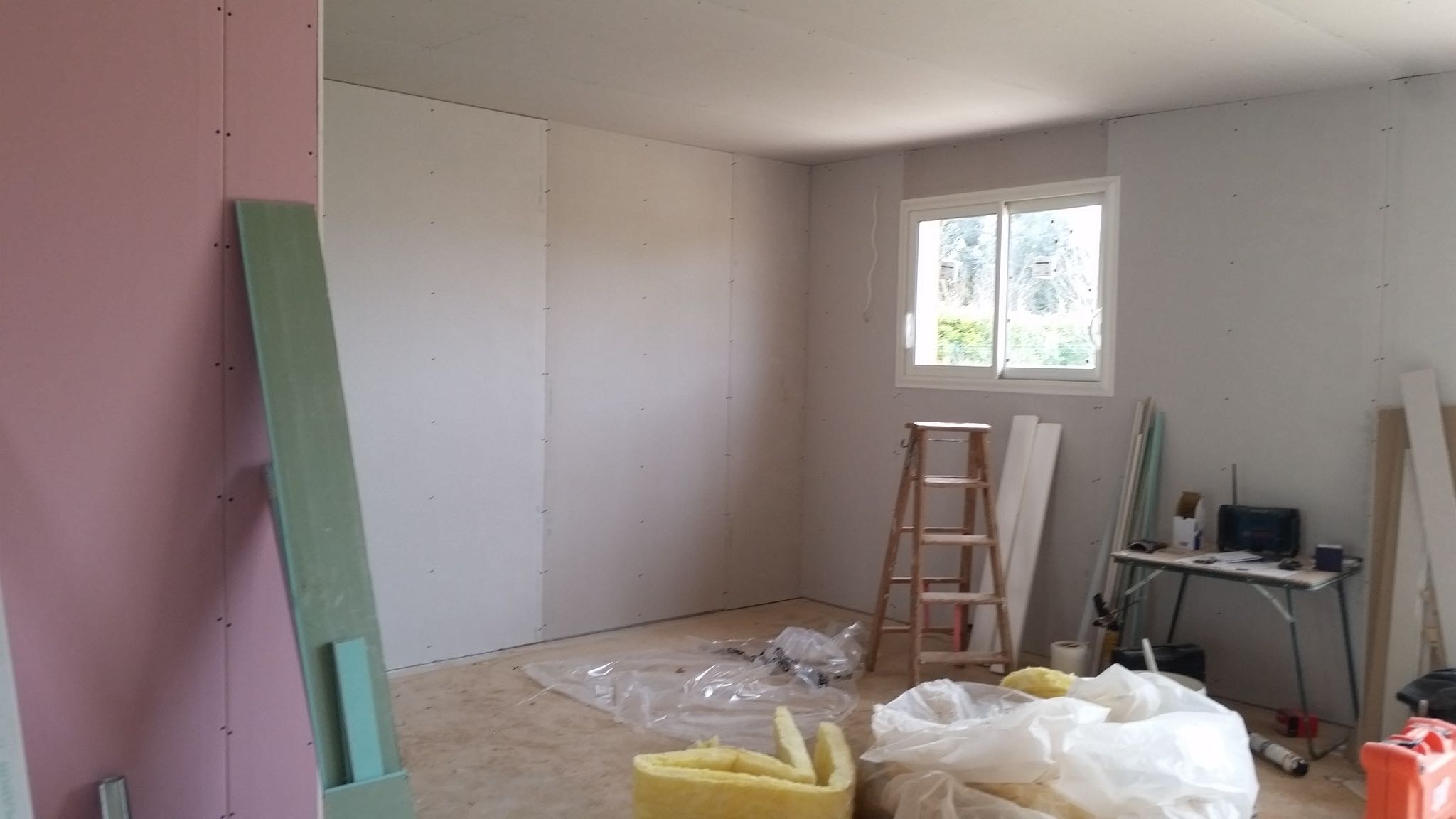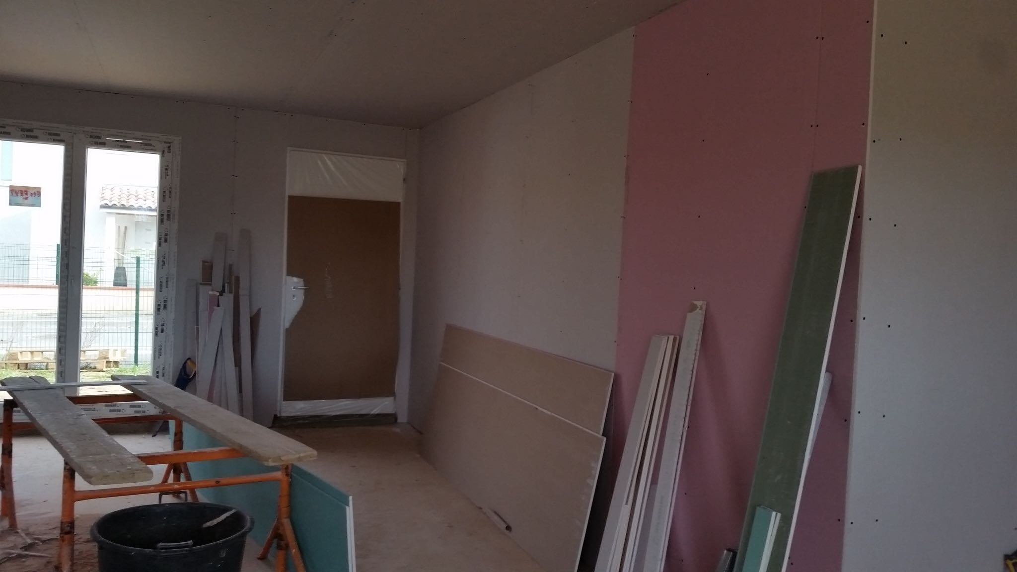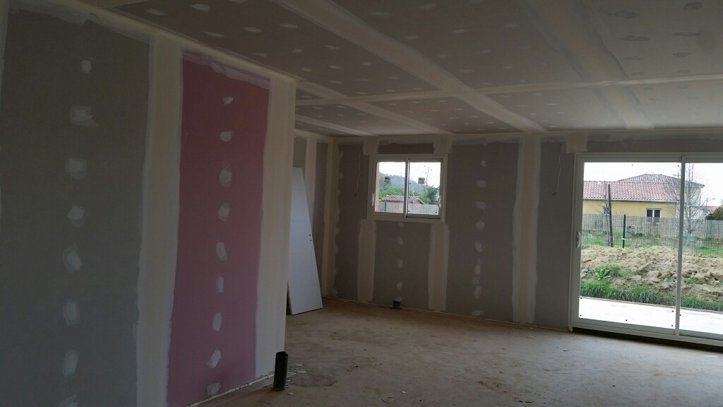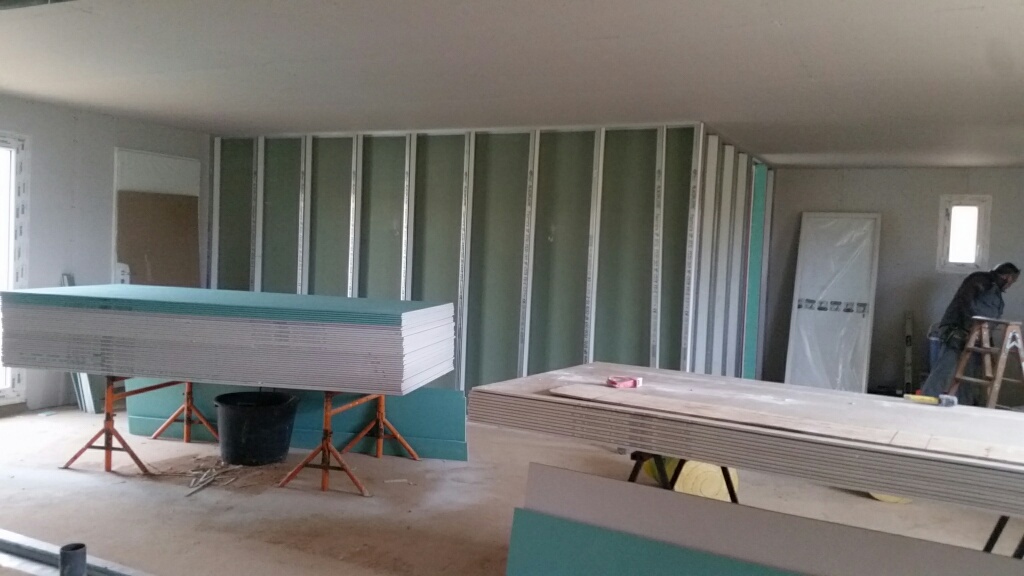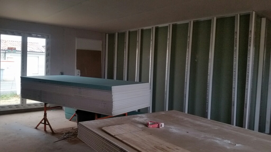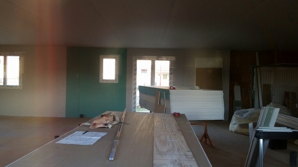 Ca y est la maison prends forme. Le placo est presque fini. Les jointeurs devraient se mettre à l’oeuvre rapidement.