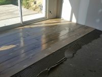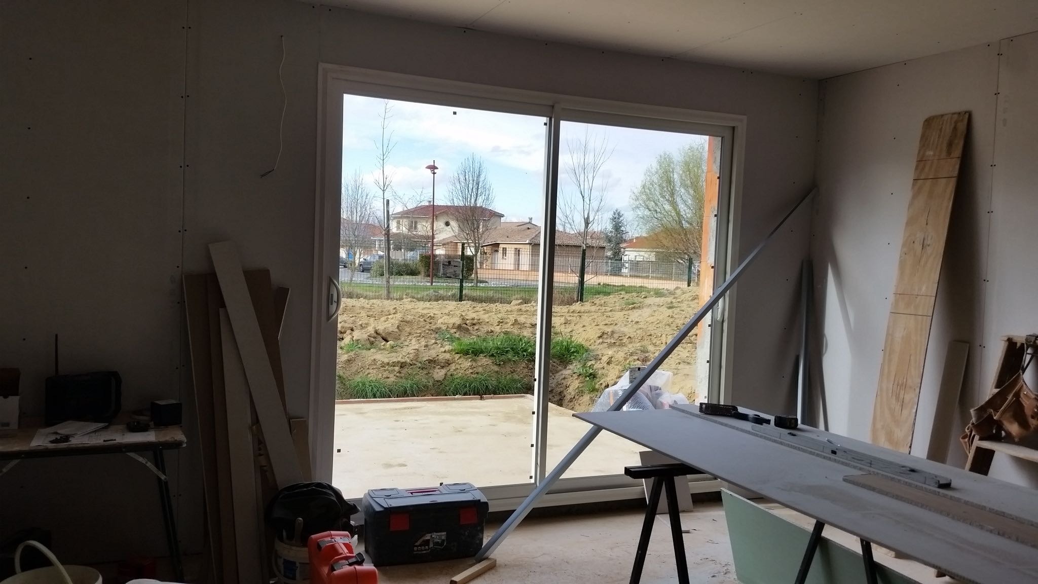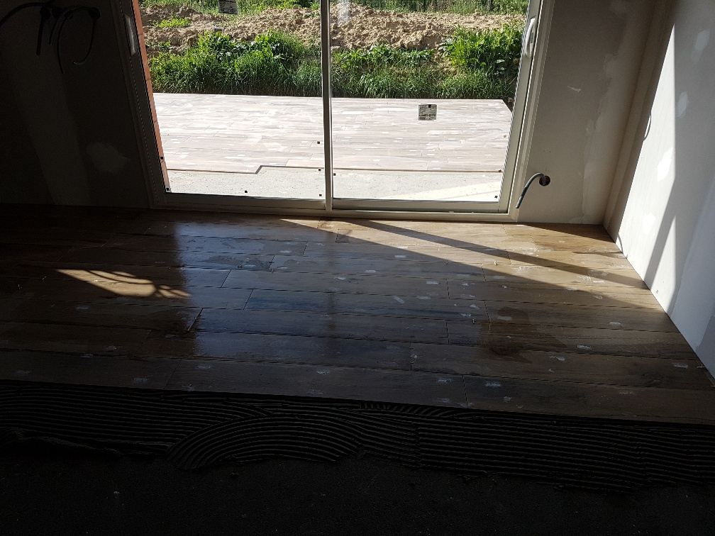 Il devient de plus en plus difficile de montrer des photos de l’avancée des travaux (nous n’avons pas les clés), du coup les posts se font plus rares. Après le passage du plombier la première semaine d’avril, l’électricien est passé la deuxième semaine d’avril pour installer toutes les prises et point lumineux. Puis est venu dans la foulée le carreleur, qui a coulé la chape maigre de la maison et de la terrasse. Cette dernière sèche depuis vendredi dernier. Entre temps le jointeur est repassé pour finir tous les joints du placo. Le conducteur de travaux nous a indiqué que la réception du chantier devrait se faire au début du mois de juin. Si le planning est tenu, on devrait emménager au plus tard fin juin/début juillet.