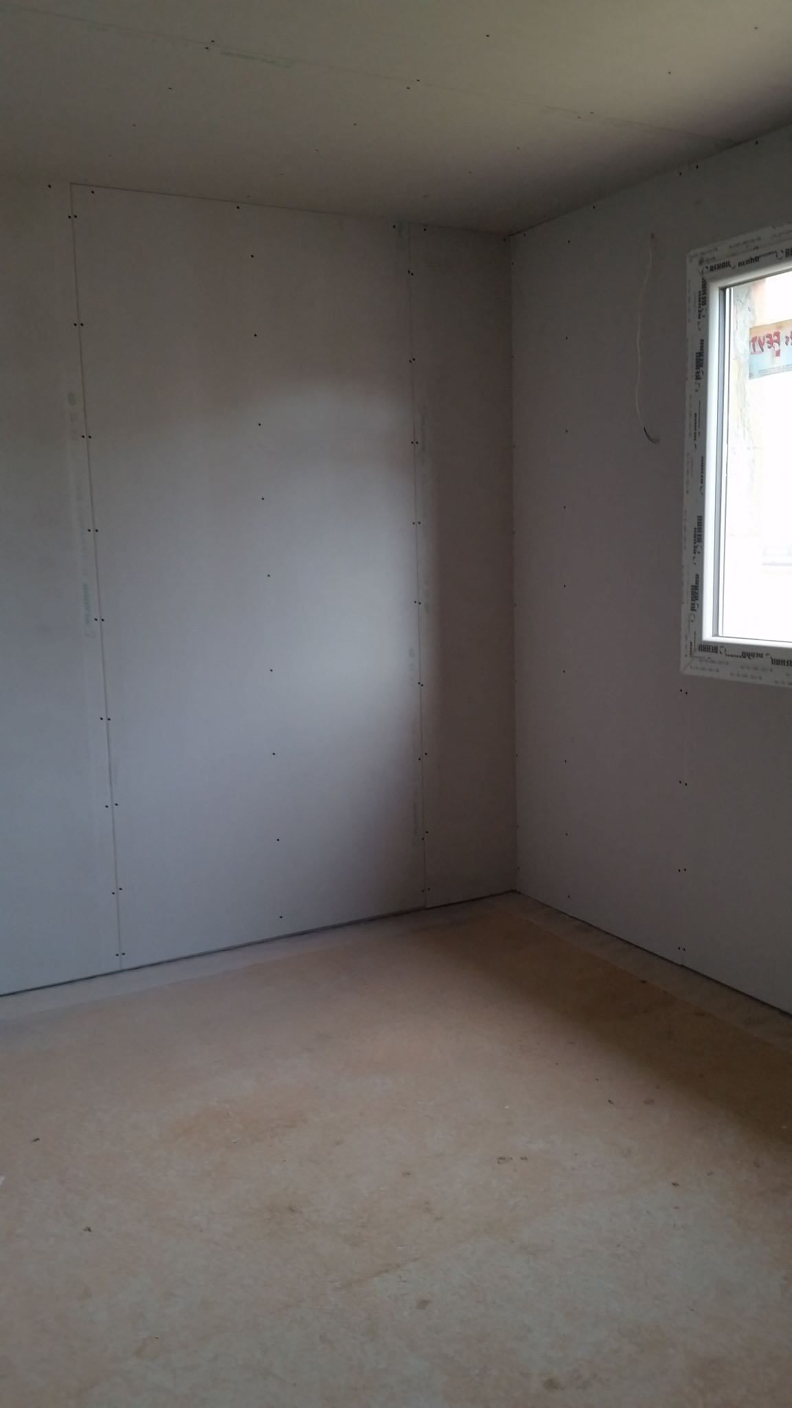 Depuis jeudi dernier, les plaquistes sont à l’oeuvre. La maison commence à vraiment prendre forme!