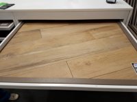 Pour le sol de la maison (cellier, cuisine, salon, salle à manger, couloir, wc et salle de bain), nous avons choisi un carrelage imitation parquet. Le choix s’est porté sur le scottish oak de Emil Ceramica en 120×20. Il a les joints rectifiés, et ressemble à du vieux parquet avec caractère, d’où notre choix.