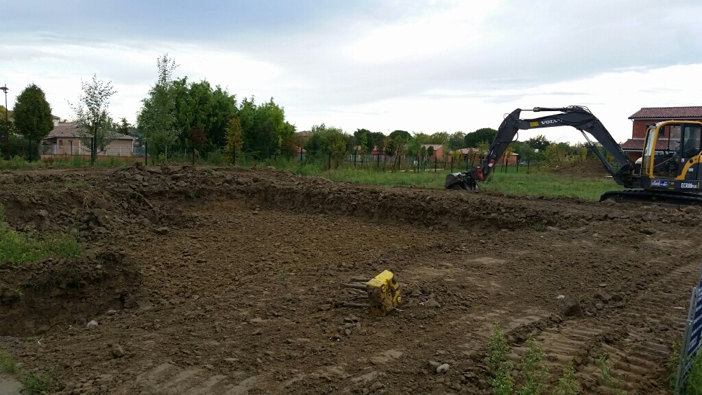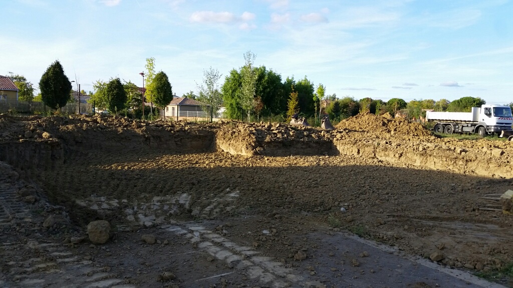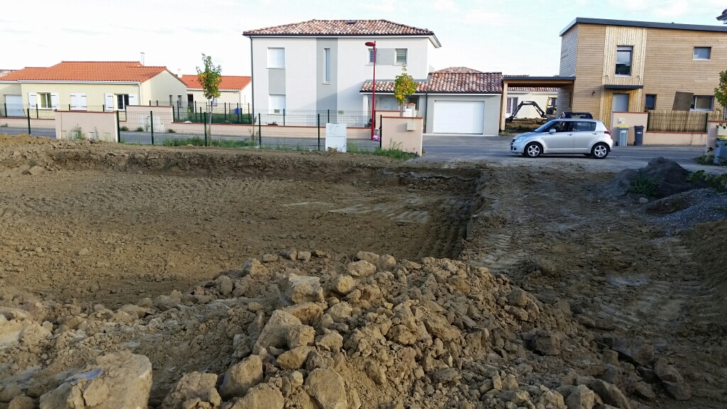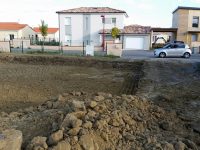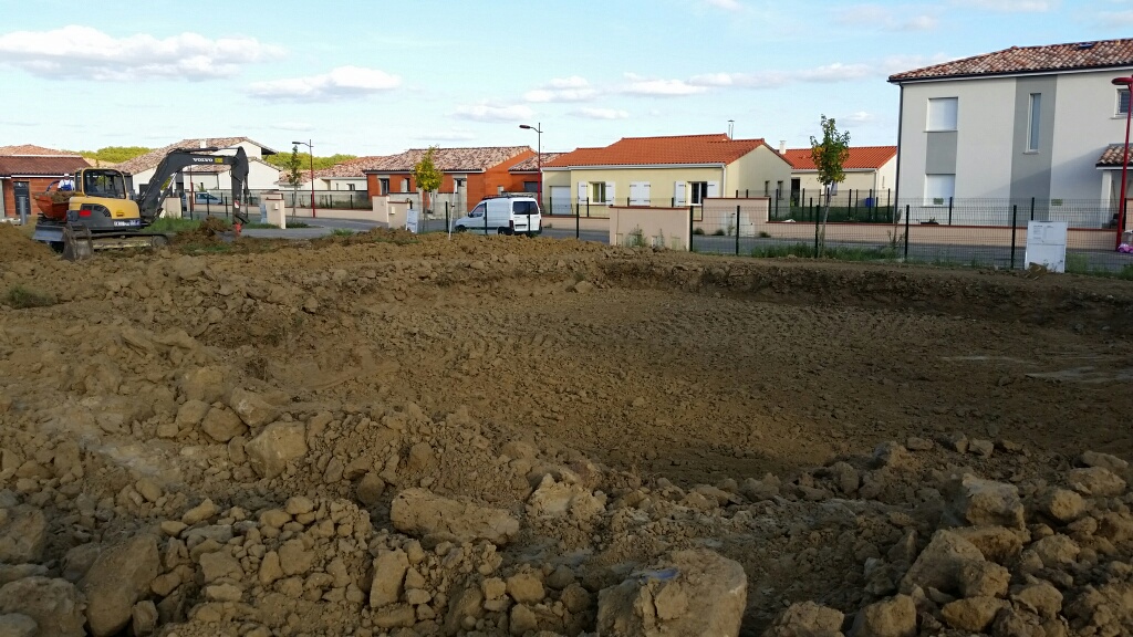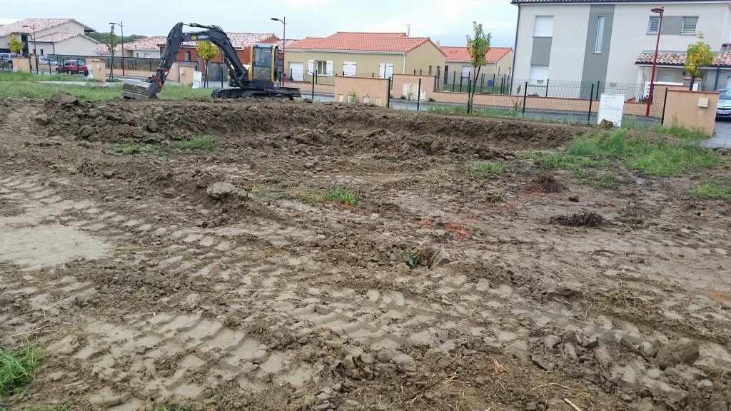 Les travaux de terrassement devraient finir demain, et le maçon doit couler le béton dans les fouilles après-demain.
