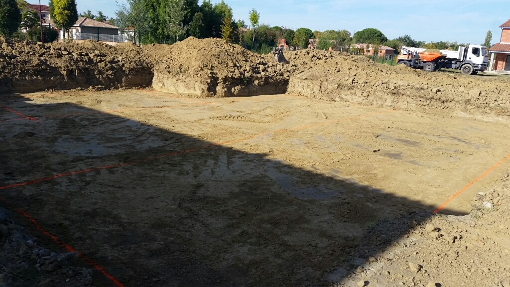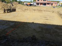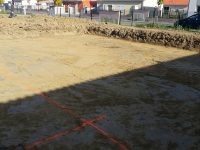 Le terrassement est presque fini. Tout a été bien nettoyé et tassé. La maison a été tracée. Il ne manque plus que les fouilles!